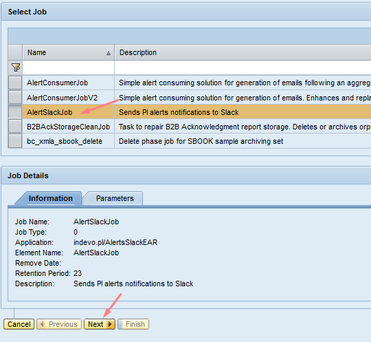 - Select AlertSlackJob from the list and click Next