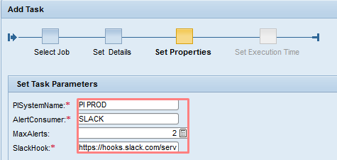 - SlackHook – enter the WebHook assigned to your Slack Channel (you created it earlier)